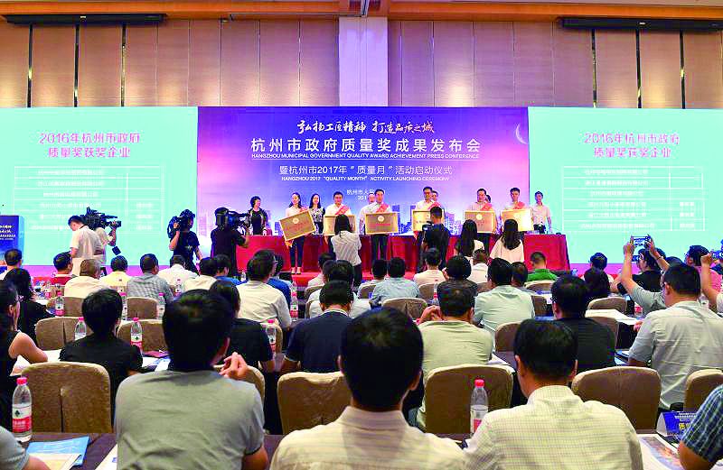 | | | 9月6日,杭州市政府质量奖成果发布会暨2017年质量月活动启动仪式在杭州市经济技术开发区举行。浙江大胜达包装股份有限公司荣获“2016年度杭州市政府质量提名奖”,集团董事局主席方能斌上台领奖并接受了众多媒体的采访。 |  |