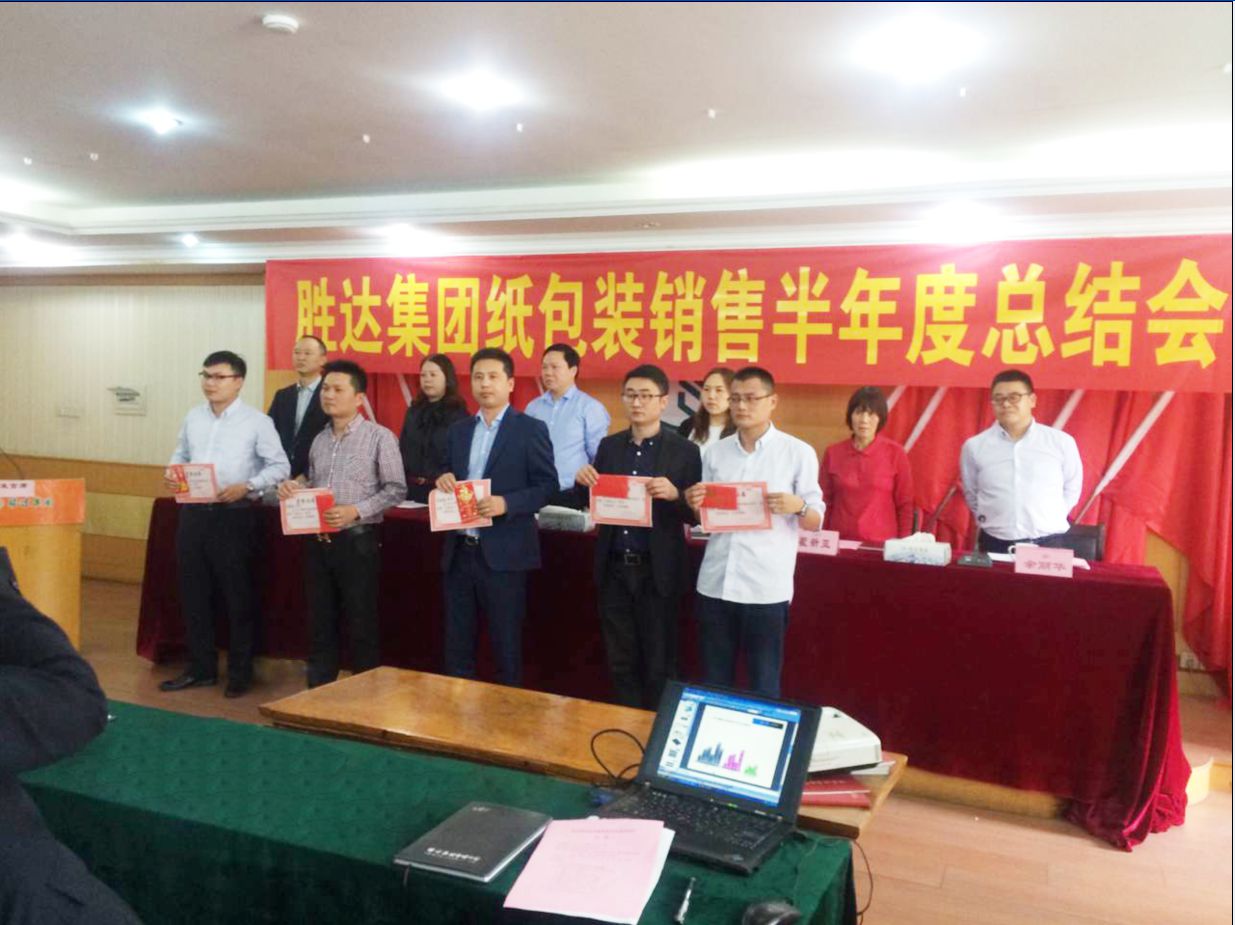 | | | 4月22日,胜达集团2016年度纸包装销售半年度总结会议在集团总部二楼会议室召开。会议发放了半年回笼达成进步奖,听取了纸包装产业总经理半年度工作报告和各营销公司总经理的表态发言,着重听取了董事局主席的重要讲话和集团总裁对下半年度销售工作布置。 |  |