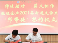 | | | 8月21日上午,2020届与2021届大学生入职汇报会暨2021届新进大学生“师带徒”签约仪式在总部18楼会议室举行,公司总裁方聪艺、副总裁舒奎明等领导出席会议。 |  |
