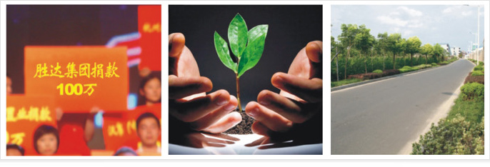 胜达集团在企业快速发展的同时,把环境保护、回报社会、扶危济困、支持地方经济建设看成是自身的使命和责任,多年来自觉地融入到和谐社会的建设中,自身做好节能减排、积极支持慈善教育事业、捐助社会公益事业等等,为地方建设作出了突出的贡献,塑造良好的企业社会形象。